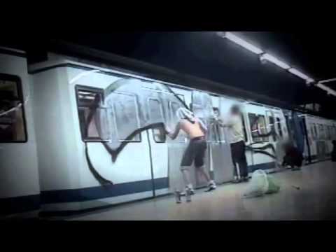 Graffiti y adrenalina en el metro de Madrid, los grupos "TNS" "TST" y "TNT" en acción pintando los vagones enteros (whole cars) en plena estación con un desenlace bastante predecible. // Graffiti and adrenaline in Madrid subway, "TST", "TNS" and "TNT" vandals crew in action painting whole cars at station with a fairly predictable end.